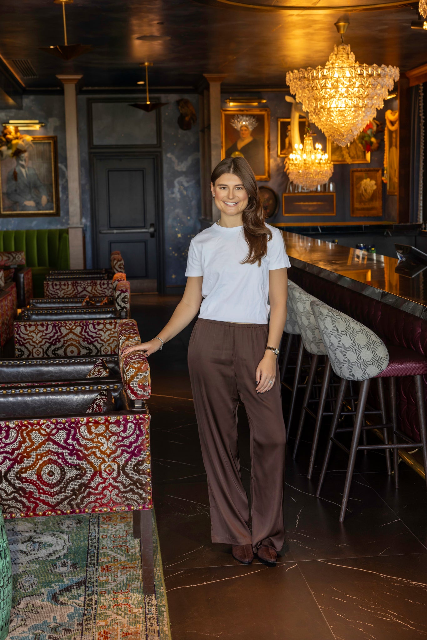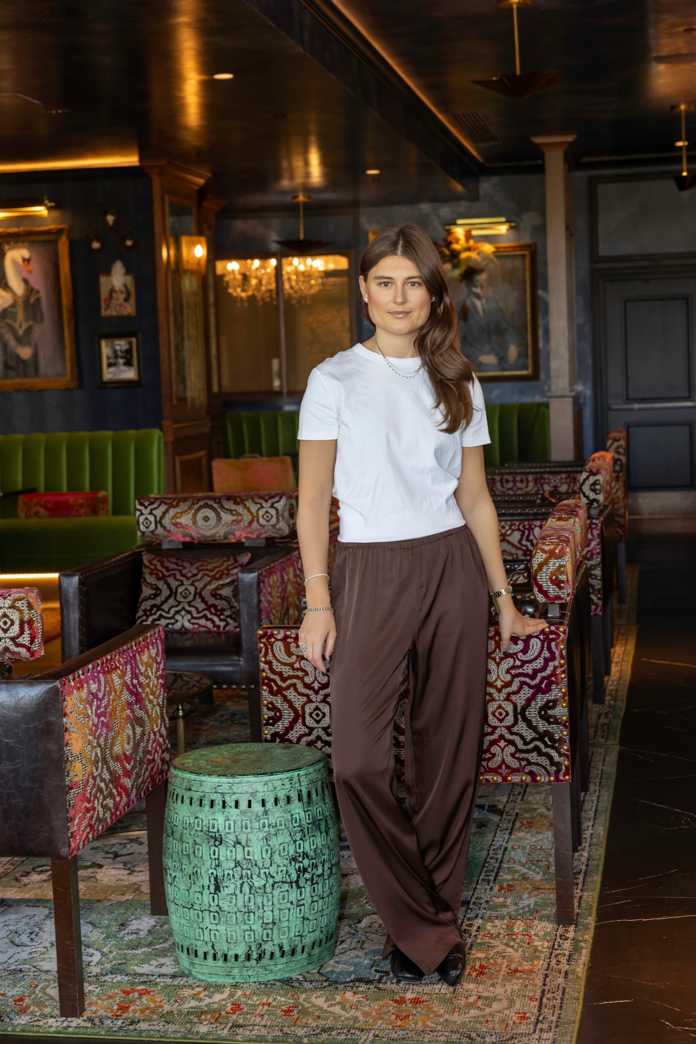 Effortlessly chic, the Lele Pants come in a rich brown satin-silk finish that catches the light beautifully. Designed with an elastic waistband for all-day comfort, these pants offer a sleek silhouette and run true to size. Featuring a ____-inch inseam, they're perfect for dressing up or down.